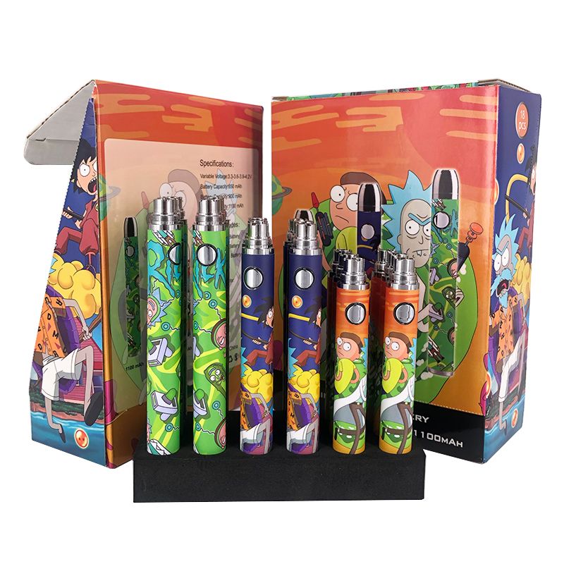 Pre Heating Battery Variable Voltage Battery 510thread E Cigarette For Thick Oil Atomizer Rick Morty Cartoon 650mah 900mah 3 In One