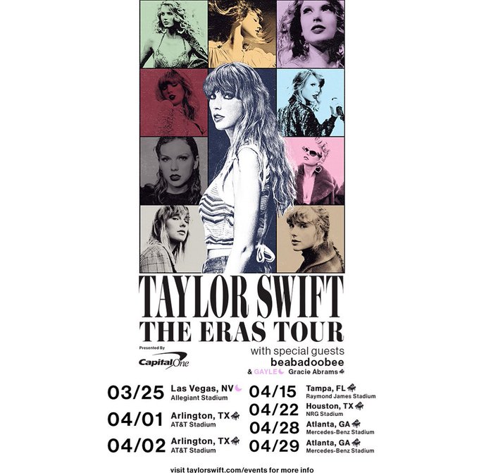 Taylor Swift The Eras Tour 2023 Poster The Eras Tour Schedule Happy Place For Music Lovers